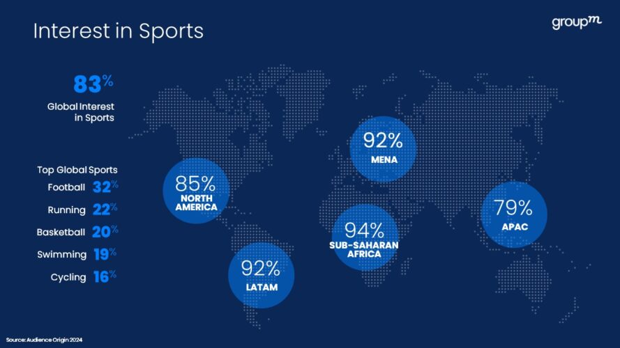 กรุ๊ปเอ็ม ในฐานะผู้นำด้านการสื่อสารทางการตลาดระดับโลก ถือโอกาสนี้พาไปเจาะลึกข้อมูลว่าจริง ๆ แล้ว “กีฬาอะไร” ที่คนไทยให้ความสนใจมากที่สุด ผ่านผลวิจัยจาก Audience Origin เครื่องมือสุดล้ำที่สามารถวิเคราะห์กลุ่มเป้าหมายได้ทั่วทุกมุมโลกของกรุ๊ปเอ็มโดยการรวบรวมข้อมูลเชิงลึกจากผู้บริโภคที่มีอายุมากกว่า 18 ปี ใน 56 ประเทศทั่วโลกทุก ๆ ไตรมาส รวมถึงประเทศไทยด้วย